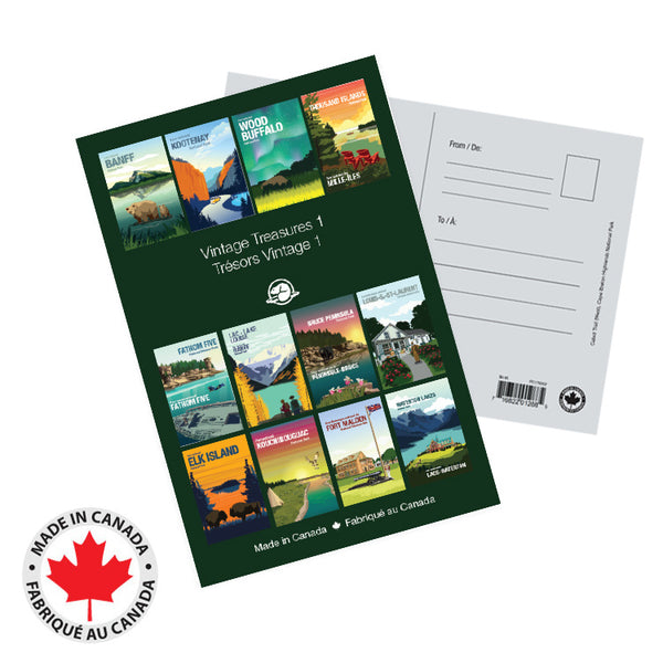 Ce paquet de cartes postales comprend des cartes postales magnifiquement illustrées de 27 sites de Parcs Canada. Encadrez ces œuvres d'art uniques pour votre mur ou envoyez-les à vos amis et votre famille pour qu'ils en profitent.